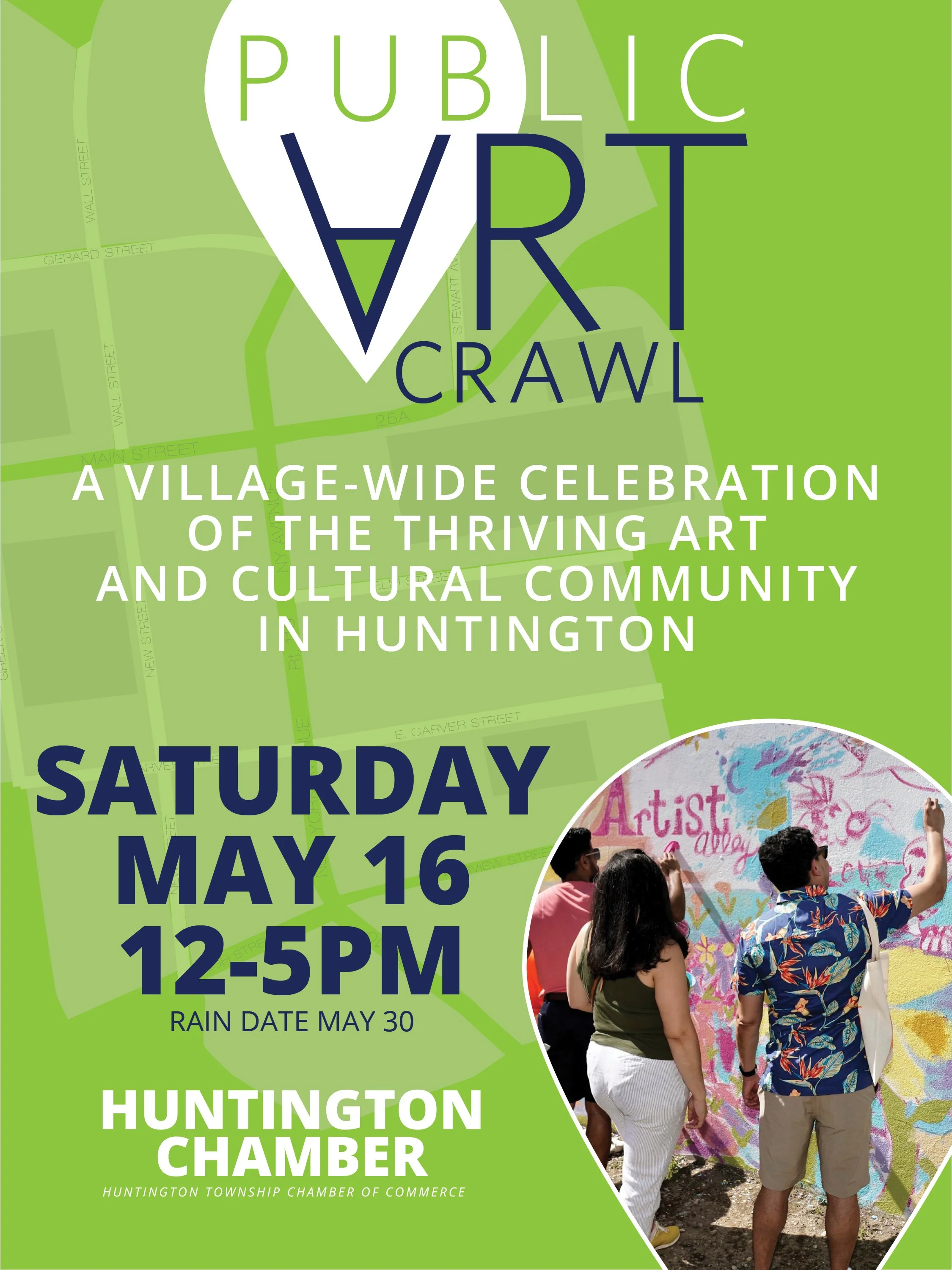 The Public Art Crawl was conceptualized in 2021 through the Arts & Experiences Committee at the Huntington Chamber of Commerce. Created as an immersive art collaboration where murals throughout town were painted in real time while highlighting all the other creative art that exists.